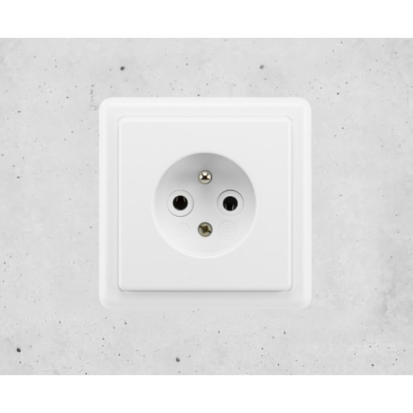 Zásuvka ABB Classic v bílé barvě, která se svým vzhledem hodí do většiny běžných místností.
