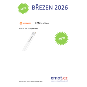 V březnu jsme pro vás připravili akci na LED trubice Ledvance. Na LED trubice ST8E-1.2M 16W/840 EM vám poskytneme dodatečnou slevu 10 %.