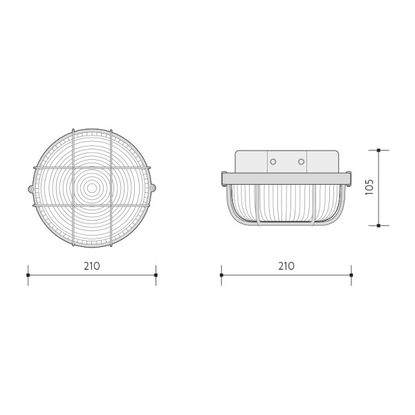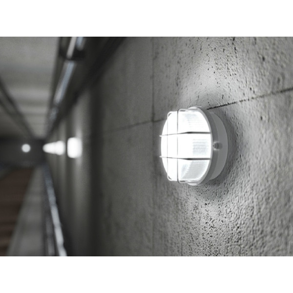 Přisazené nástěnné nebo stropní svítidlo PANLUX s čírým krycím sklem a plastovou ochrannou mřížkou.