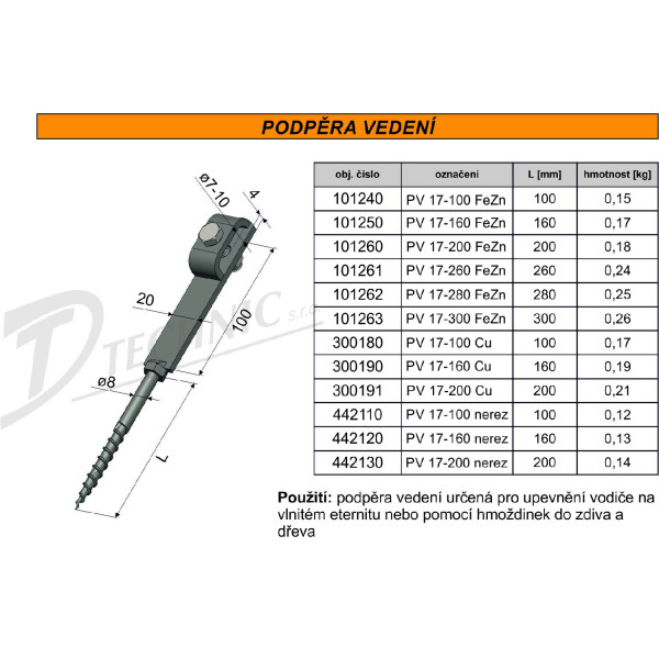 Tagy: DT Technic 300180, PV17-100 Cu, podpěra vedení 100mm