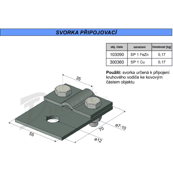 Použití: svorka určená k připojení kruhového vodiče ke kovovým částem objektu.